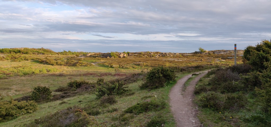 Dabei geht der Weg hauptsächlich über die felsige Landschaft. Das sieht aus, als wäre man auf einem Planeten gelandet. Hier wachsen nur kleine Pflanzen, Blümchen oder Gräser, denn es ist sehr windig und sehr steinig hier. Bäume haben an der Küste keine Chance.