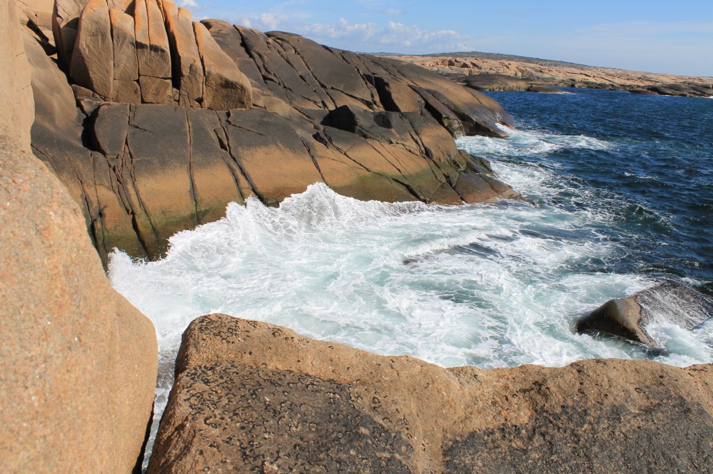 Die Felsen hier sind nicht gesichert und wenn man nicht vom Weg abkommt, passiert einem auch nichts. Wenn man sich jedoch traut, sich sehr vorsichtig dem abrupten Ende der Insel zu nähern, wird man mit wunderschönem Wellengang belohnt und einer unglaublichen Aussicht über den atlantischen Ozean.