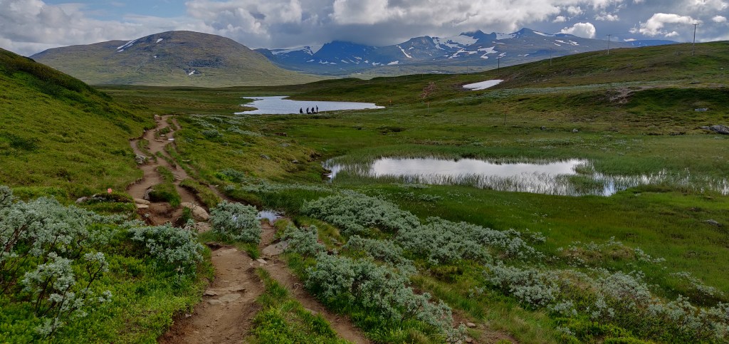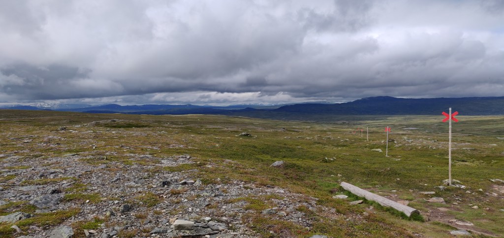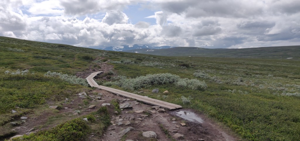 Im ersten Abschnitt sind wir von Storulvån Fjällstation zur Sylarna Fjällstation gewandert. Insgesamt etwas mehr als 16km. Über Holzplanen und ausgetretene Pfade, immer weiter hinauf, auf etwa 1040 Höhenmeter.