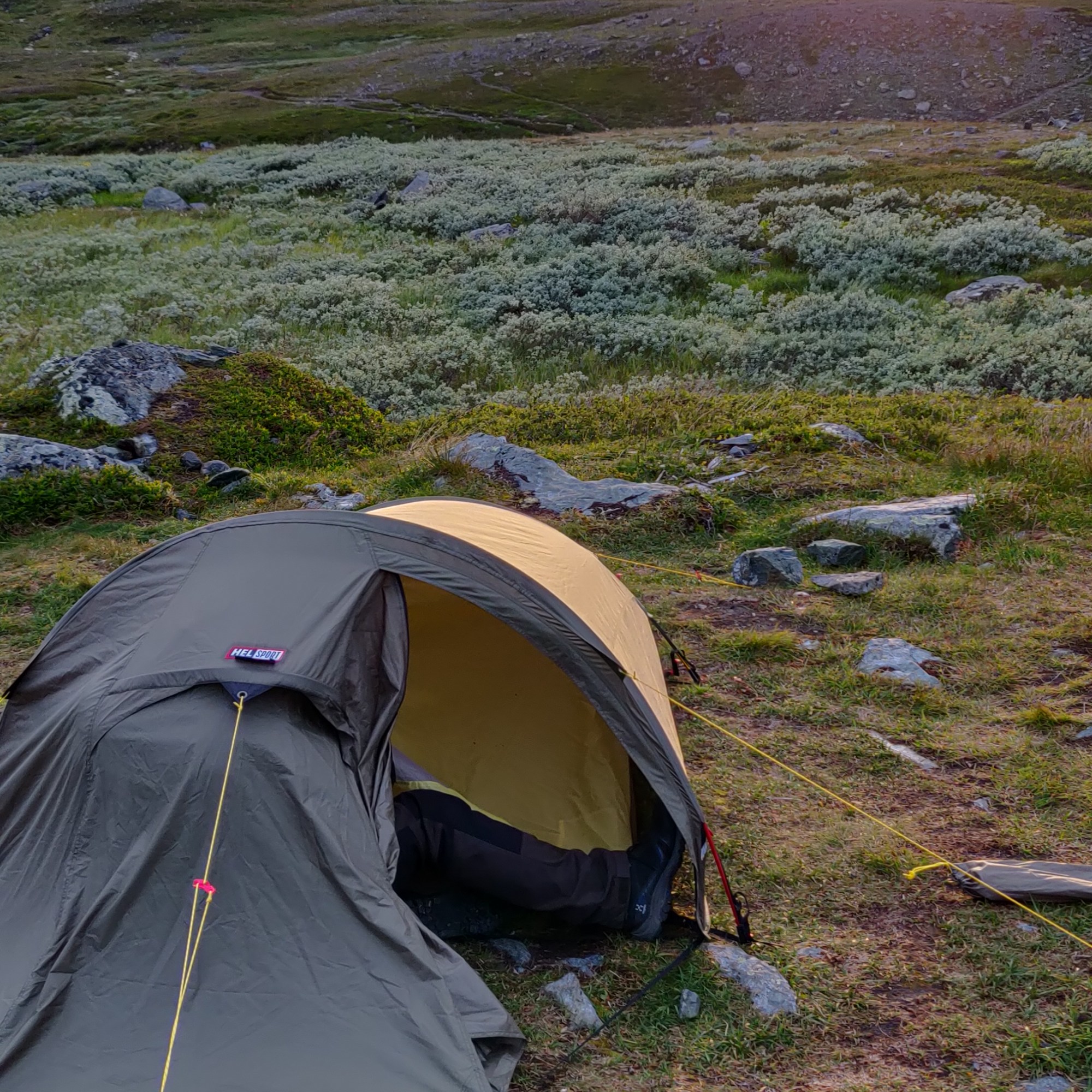 Der zweite Tag war sehr hart und sehr schön und den tiefen Schlaf im Freien hatten wir uns mehr als verdient. Entsprechend müde und glücklich sind wir in unser Zelt gekrochen. Der nächste Tag würde insgesamt kürzer ausfallen, es waren nur noch etwa 13km übrig, zurück nach Storulvån.