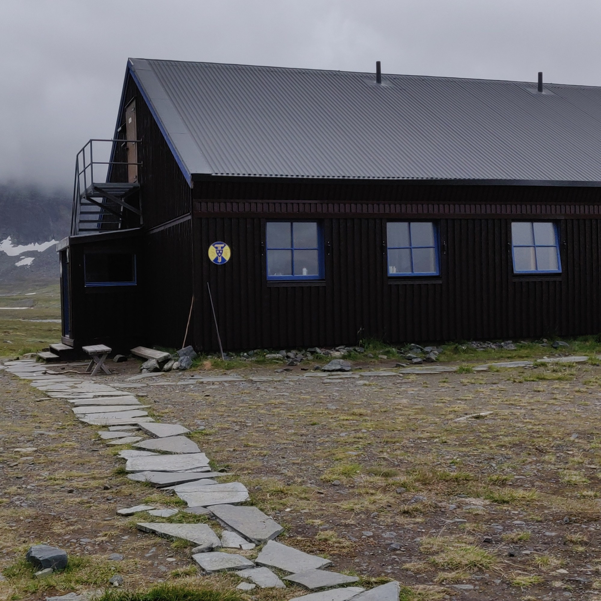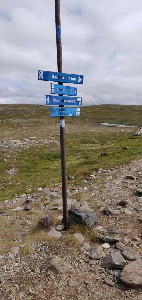 Den Abschluss des ersten Abschnitts bildet ein etwa 3 Kilometer langer Aufstieg über Geröll, hinauf zur Sylarna Fjällstation. Man kann wirklich von sich behaupten, es geschafft zu haben, wenn man die Station erreicht hat. Ein bisschen kann man sich ja auch verlieren in der Steinwüste und wenn nicht hier und da ein roter Punkt zur Orientierung auf die Steine gesprüht wäre, wüsste man schnell nicht, wo man sich befindet.