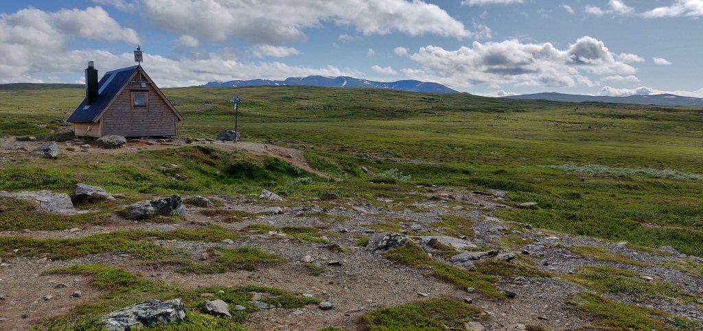 Mit dem letzten Marsch würden wir das Dreick abschließen und ein wenig tut einem dann das Herz weh. Denn jetzt waren wir gewöhnt ans Laufen, an die Wege und die Hitze, an die wunderschöne Landschaft und die reine Luft. Und deshalb sind wir nur schwer losgekommen aus Blåhammaren. Auch hier haben wir in der Station gefrühstückt. Es war reichlich da und geschmeckt hat es auch herrlich. Haferbrei, Brot, Butter und Marmelade, Käse und Wildsalami. Kaffee und Tee und jede Menge Wasser, um die eigenen Wasserblasen aufzufüllen.