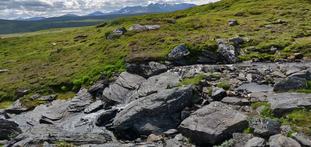 Der Weg nach Blåhammaren fühlt sich nicht nur weit an, er ist auch lang und beschwerlich. Hier wird man wieder daran erinnert, dass man besser hätte packen können und man mit einem etwa 11kg schweren Rucksack eben nicht so schnell voran kommt. Auf der anderen Seite wird man aber an jedem Schritt belohnt mit der Aussicht, der Luft und dem köstlichen Wasser.